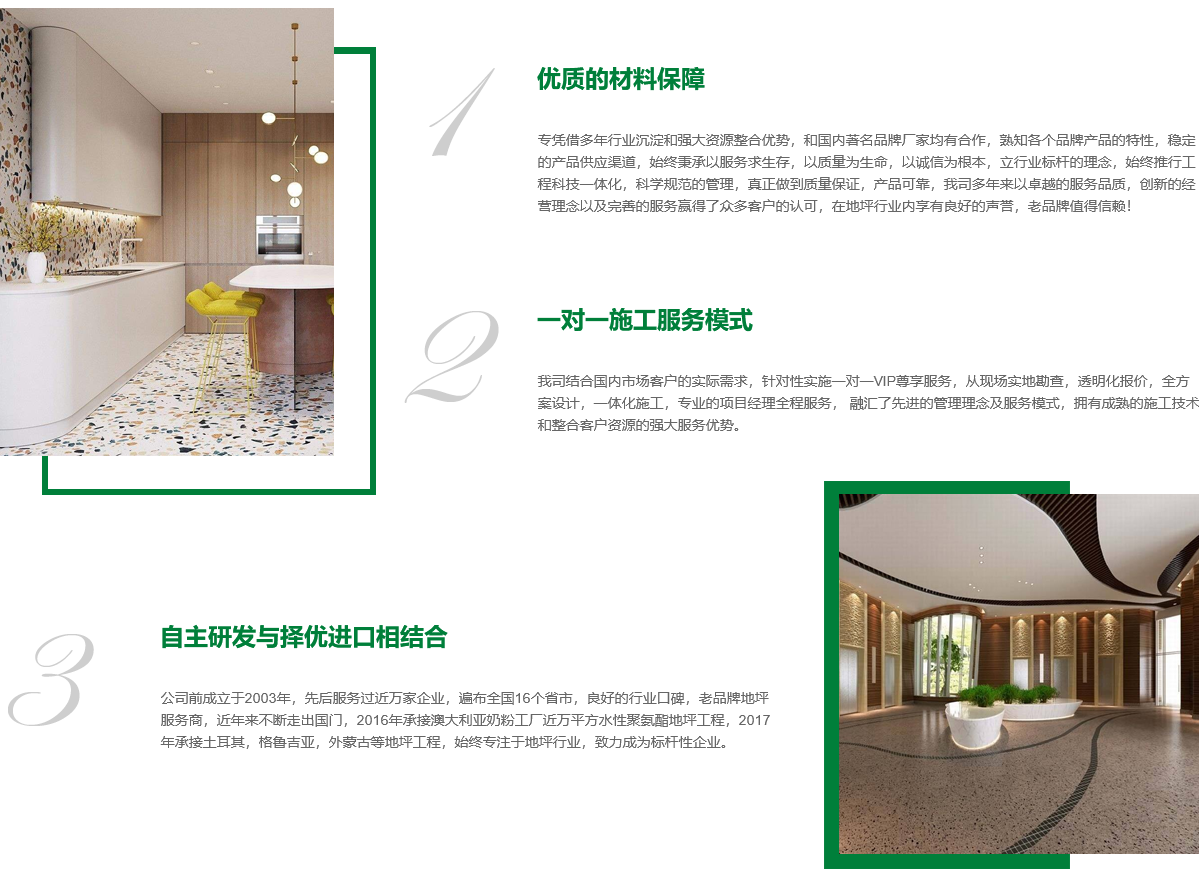 上海勇享地坪是上海勇享建筑裝飾工程有限公司旗下出色也是國內(nèi)地坪承建商企業(yè)。 本公司成立于2012年,是專業(yè)從事現(xiàn)代化水磨石工業(yè)地坪、商用地坪、國內(nèi)獨家創(chuàng)意類地坪、市政公用地坪、混凝土固化(染色)地坪,倉庫地坪設計,停車場地面設計,學校,精品地面設計,酒店,餐廳各類地面的設計與施工,運動場地及其他地坪,水磨石地板系列的研發(fā)、設計、生產(chǎn)、銷售、施工、服務為一體的高新科技企業(yè)。